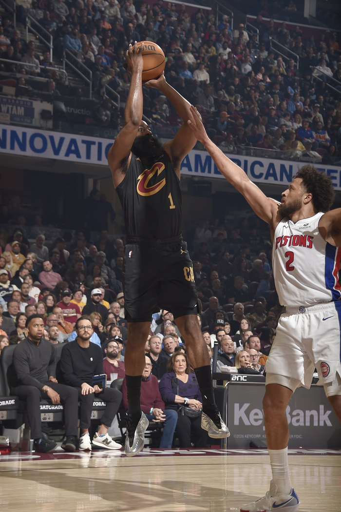 哈登18分7助、莫布里18分4助、施罗德15分5助,哥仨分别在首发阵容、第二节衔接段(莫布里)、下半场衔接段(施罗德)带队压制住了活塞的反扑。每当活塞将分差迫近到2分,骑士用一手突分→转移球→内切+空位三分扫射始终掌控着比赛走势。